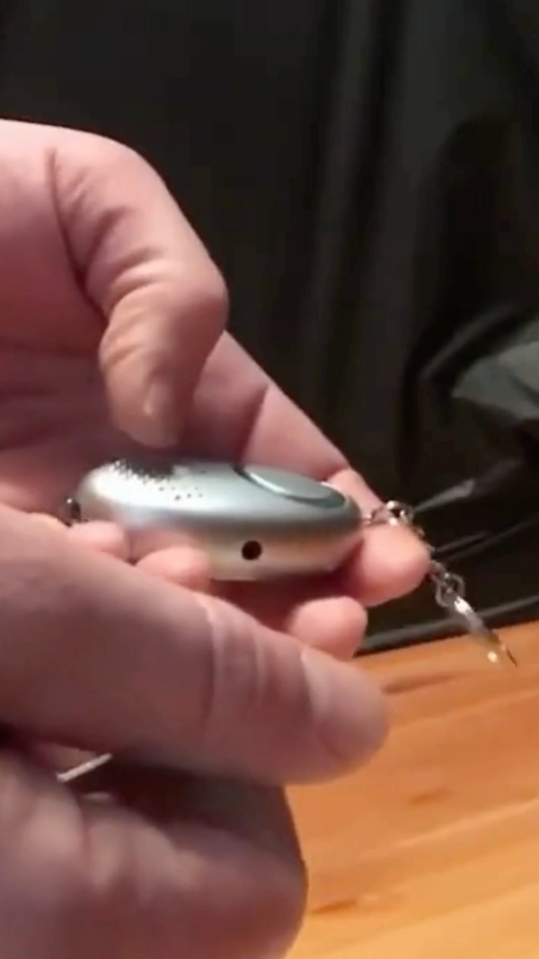 Om het alarm uit te schakelen, plaats je het pinnetje terug. De zaklamp gebruik je met de aparte knop.